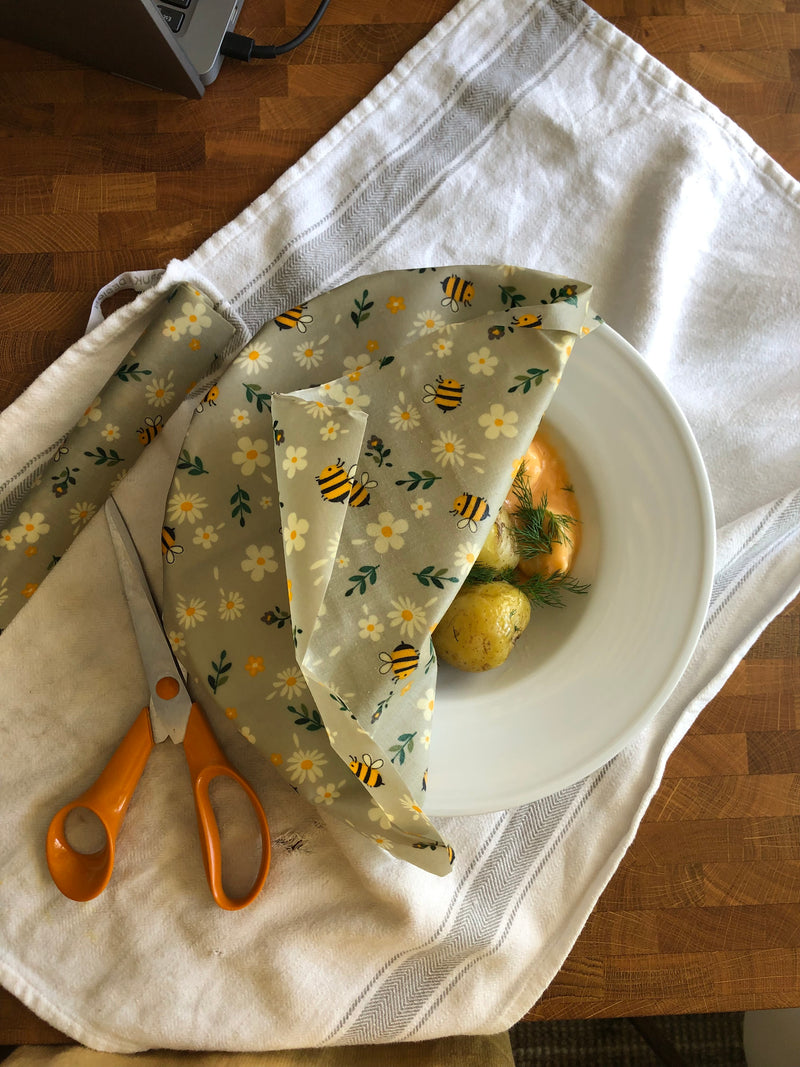 Första gången jag använder bivaxduk, verkar väldigt bra. Gillar mönstren.